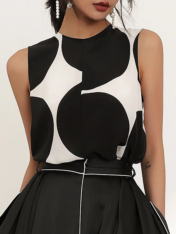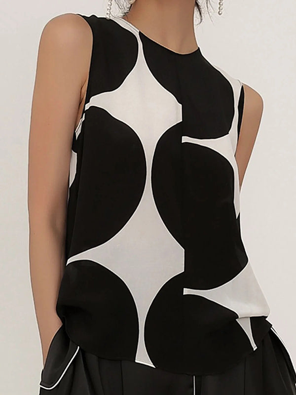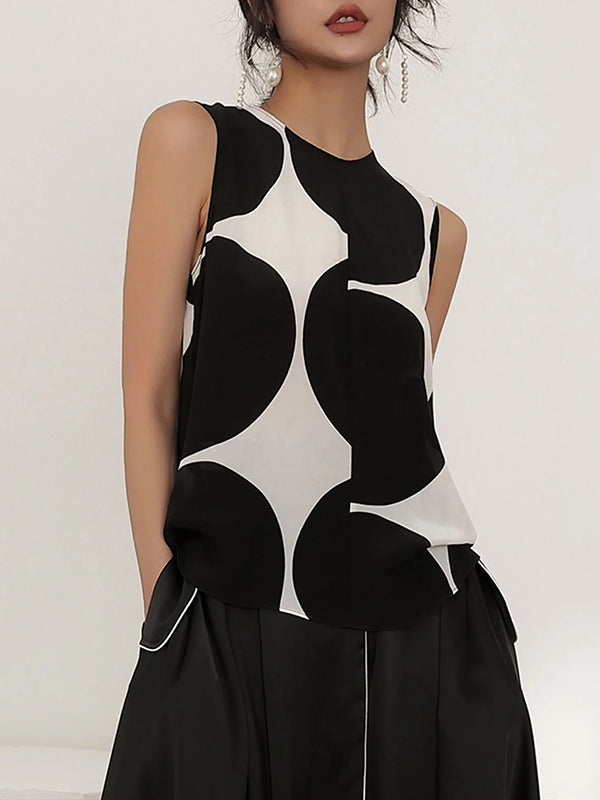Momentlover Urban Polka-Dot Round-Neck Sleeveless Vest