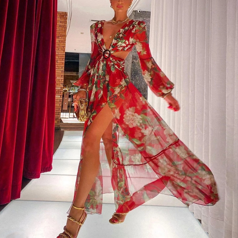 Halloween Beach Dress Summer Floral Swimsuit Print Belt Bathing Suit Women Long Cover Up Off Shoulder Beachwear Bandeau Halt Swimsuit