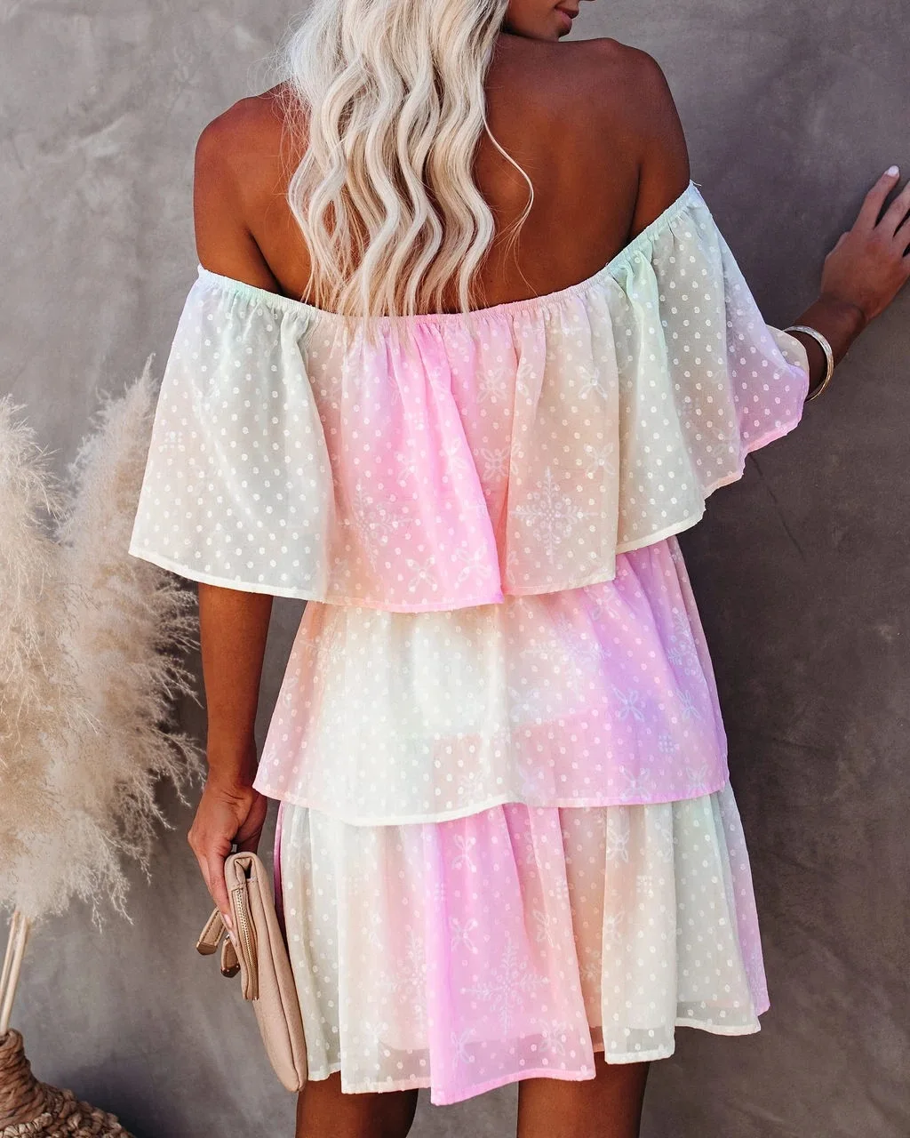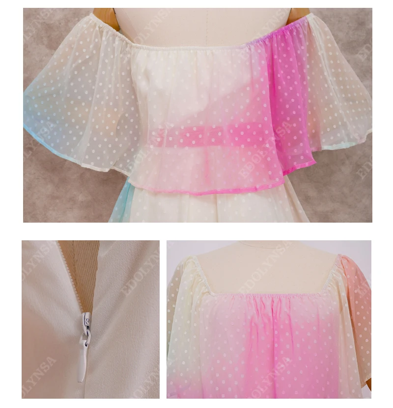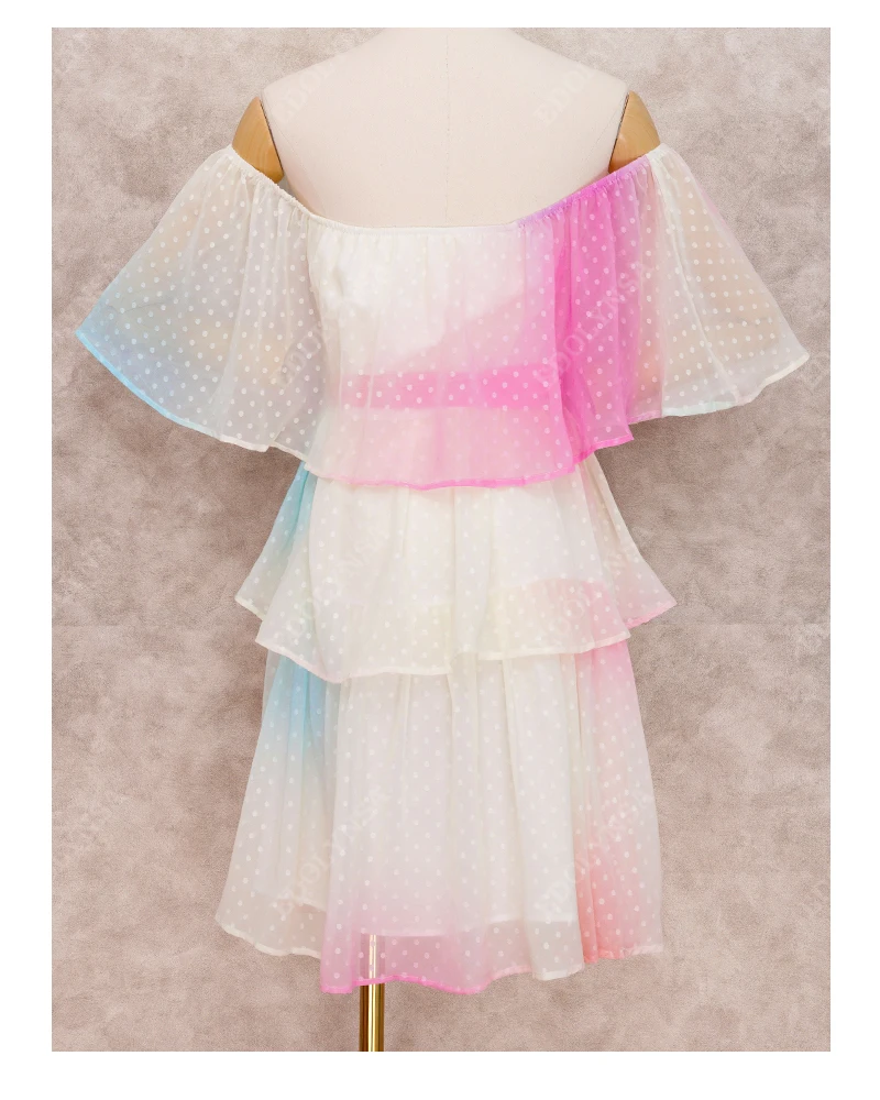High Quality Bohemian Rainbow Slash Neck High Waist Summer Mini Dress Chiffon Tunic Women Sexy Off the Shouder Party Dress A451