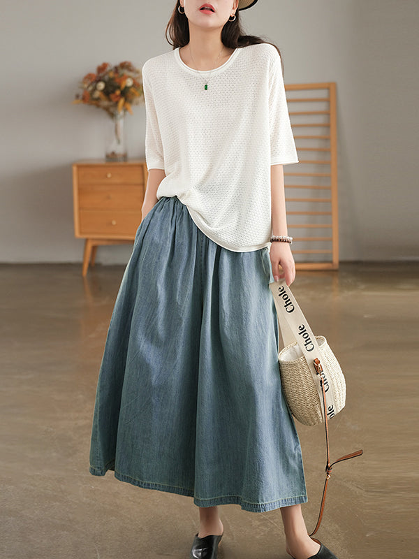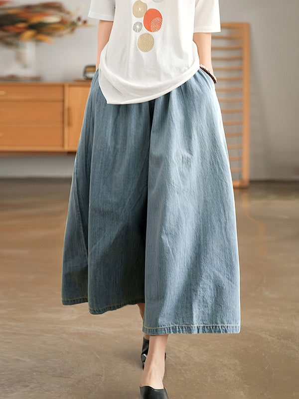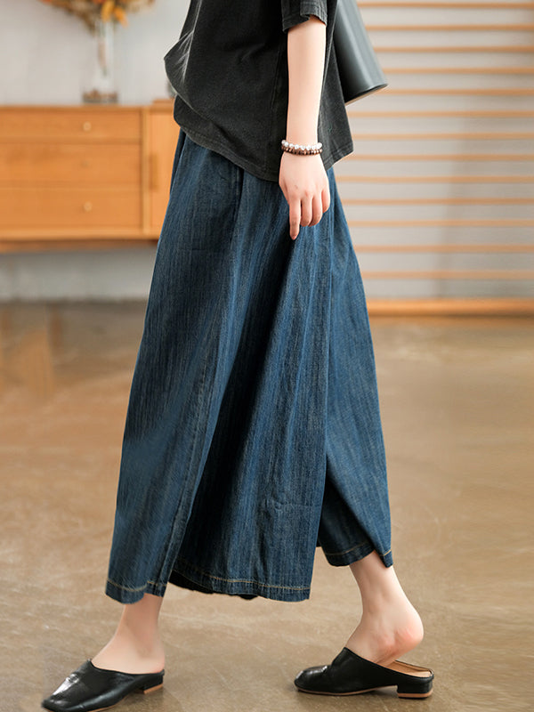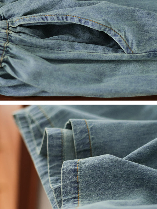 Momentlover Artistic Retro Loose Wide Legs Elasticity Jean Pants