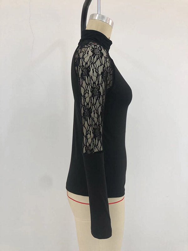 Momentlover Solid Color Hollow Skinny Long Sleeves High Neck T-Shirts Tops