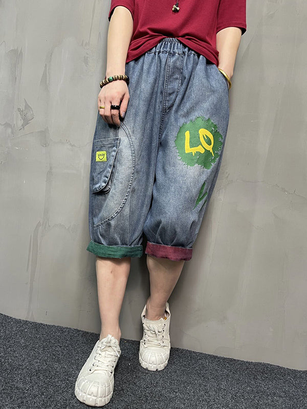 Momentlover Split-Joint Printed Elasticity Loose Harem Pants Jean Pants Bottoms