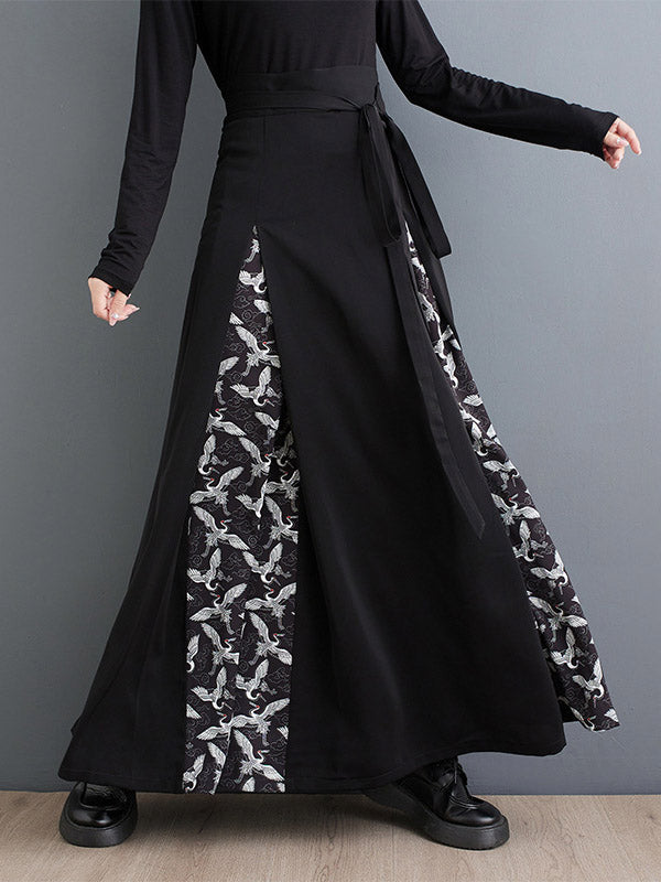 Momentlover Tied Waist Split-Joint Printed Pleated High Waisted A-Line Skirts