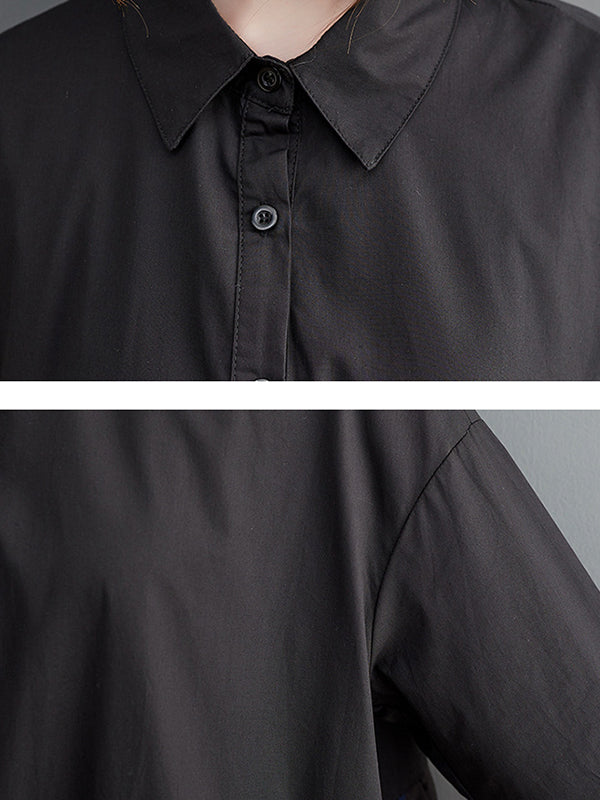 Momentlover Split-Joint Printing Pleated Contrast Color Loose Long Sleeves Polo Midi Dresses