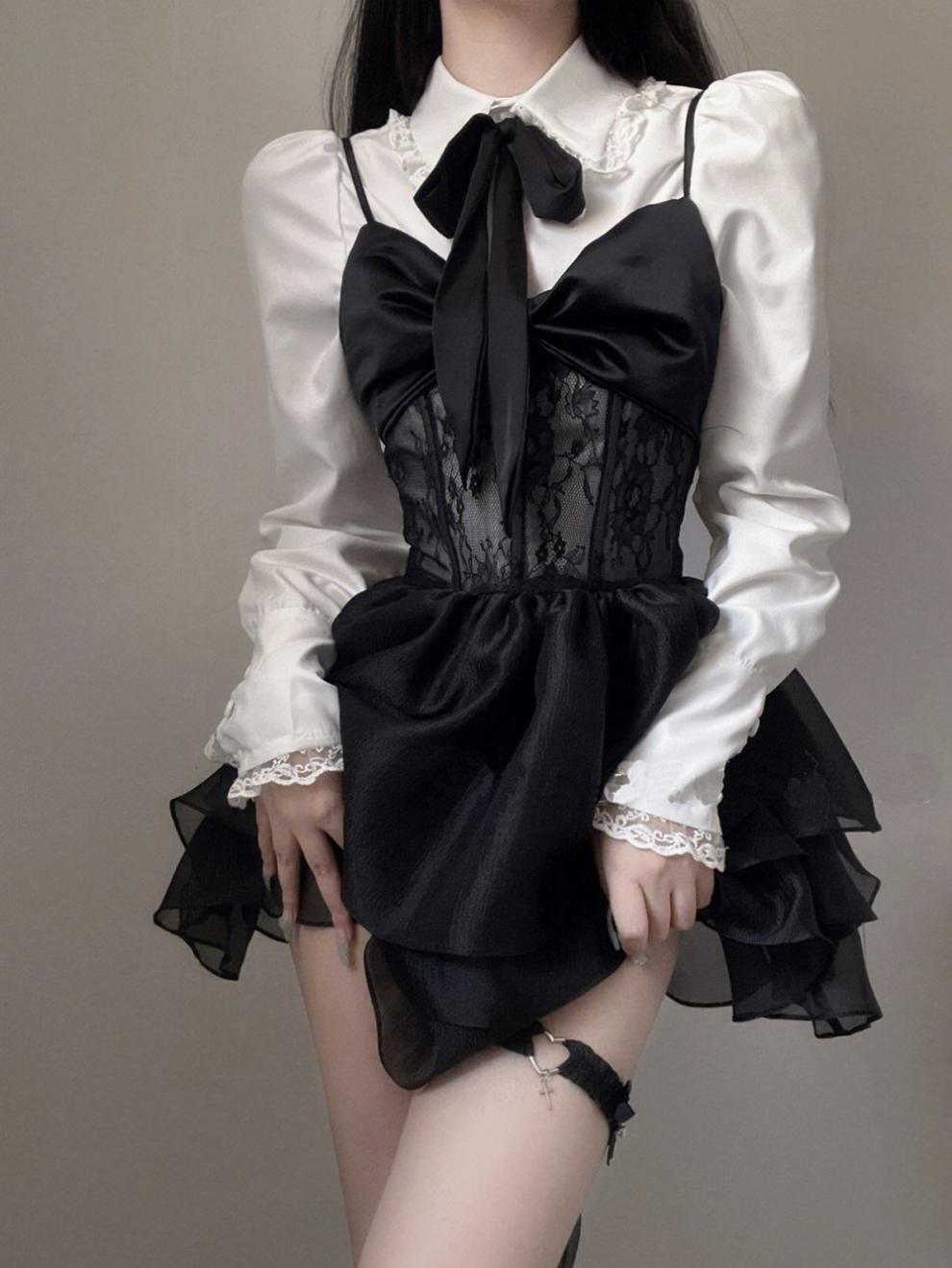 - A-line black tulle dress GEU785