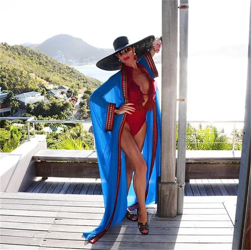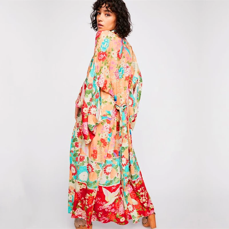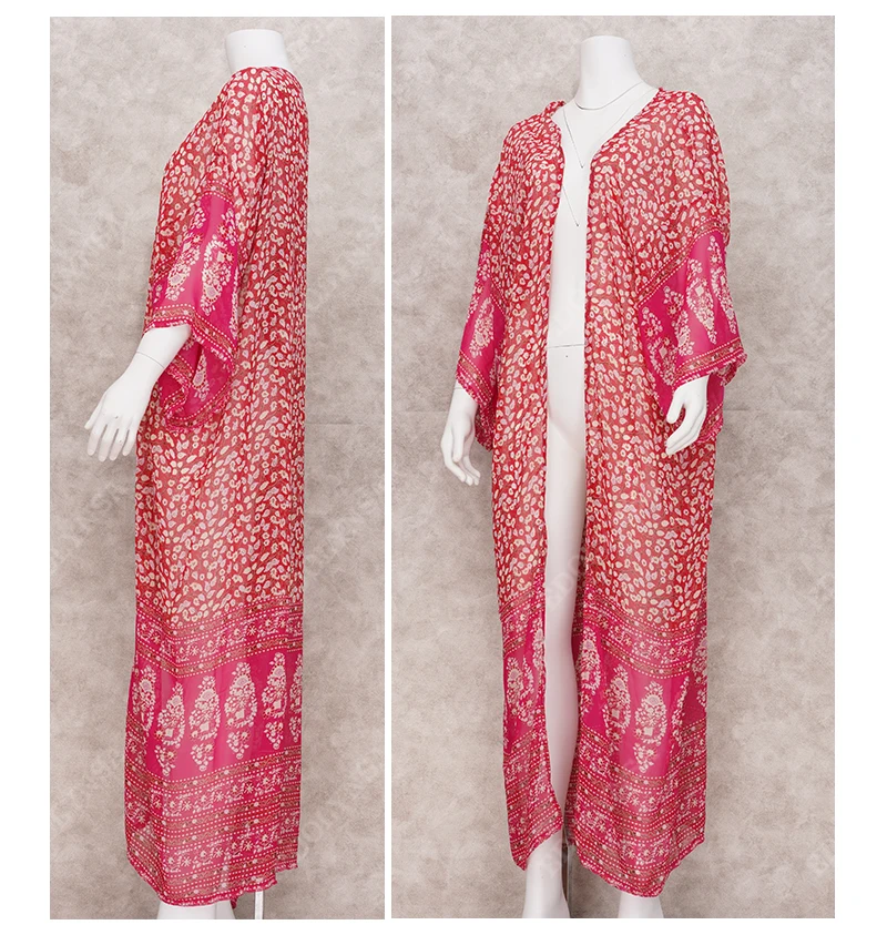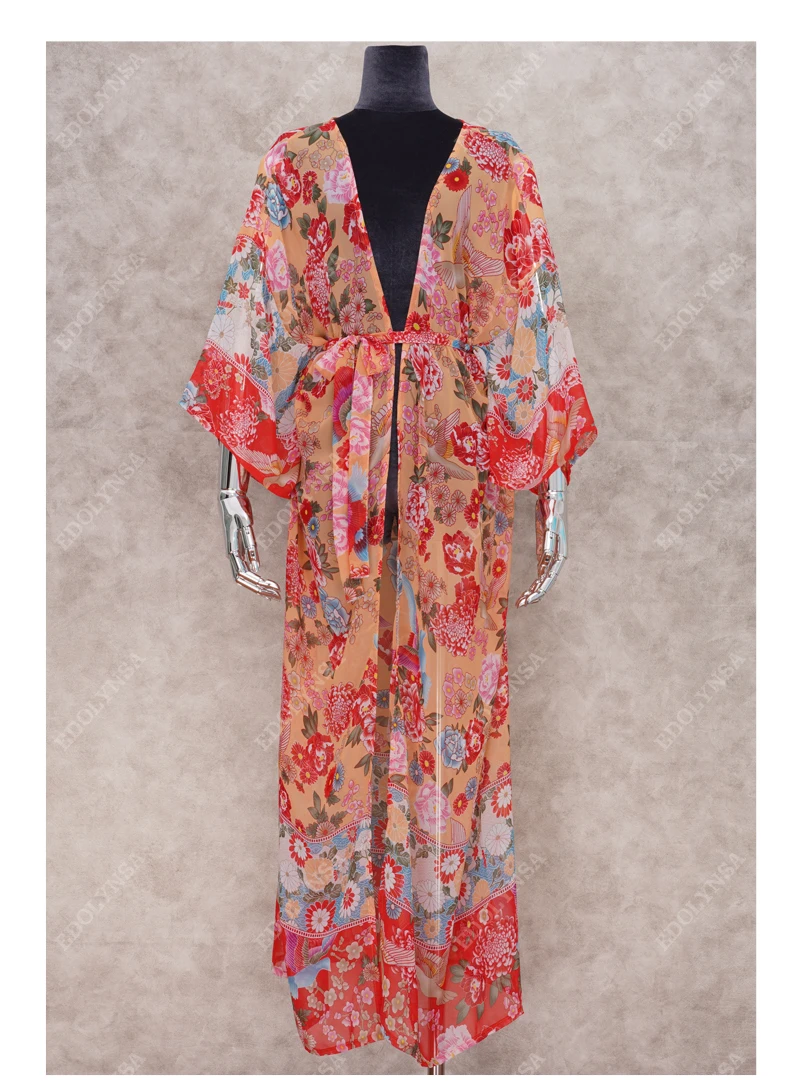 Floral Printed Front Open Summer Women Beach Wear Wrap Dress Chiffon Tunic Sexy Sarongs Robe De Plage Pareo Q751