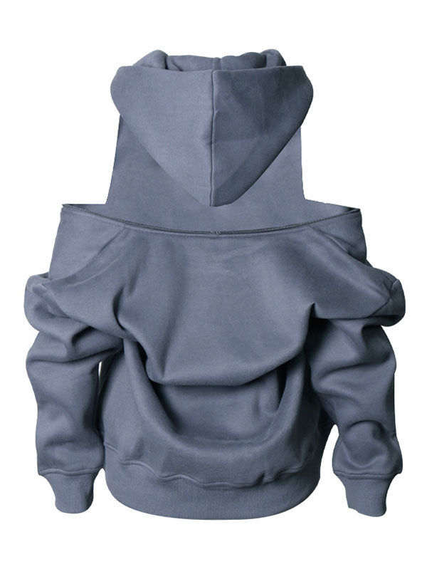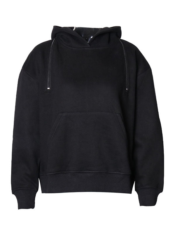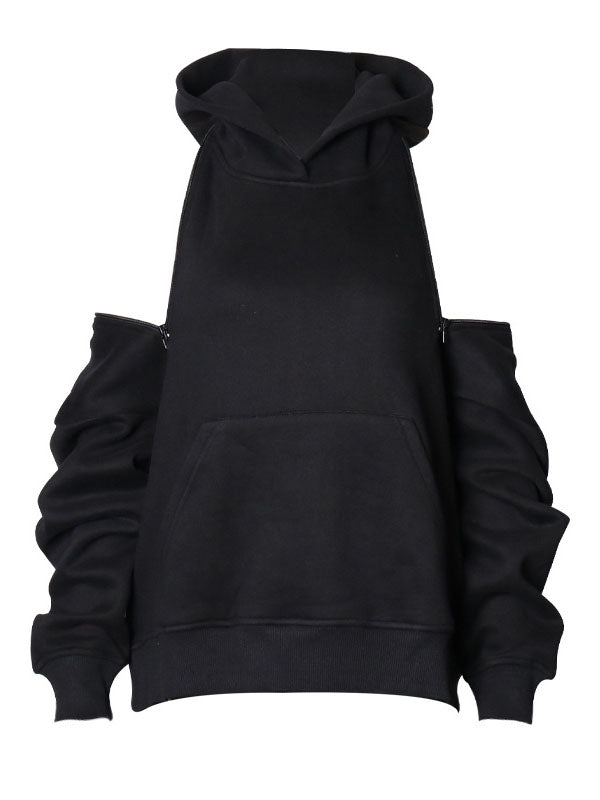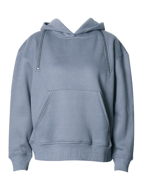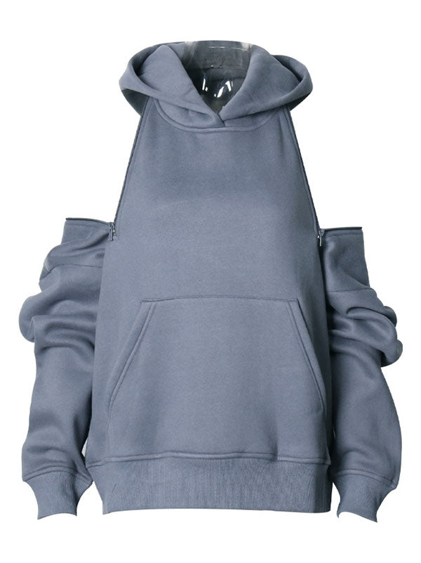 Momentlover Casual Loose Long Sleeves Hollow Solid Color Hoodies Tops