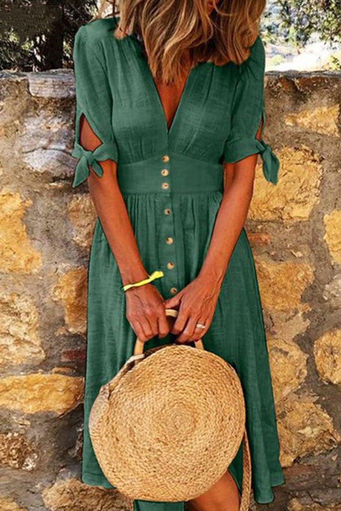 Momentlover Fashion Casual Solid Patchwork V Neck A Line Dresses(5 Colors)