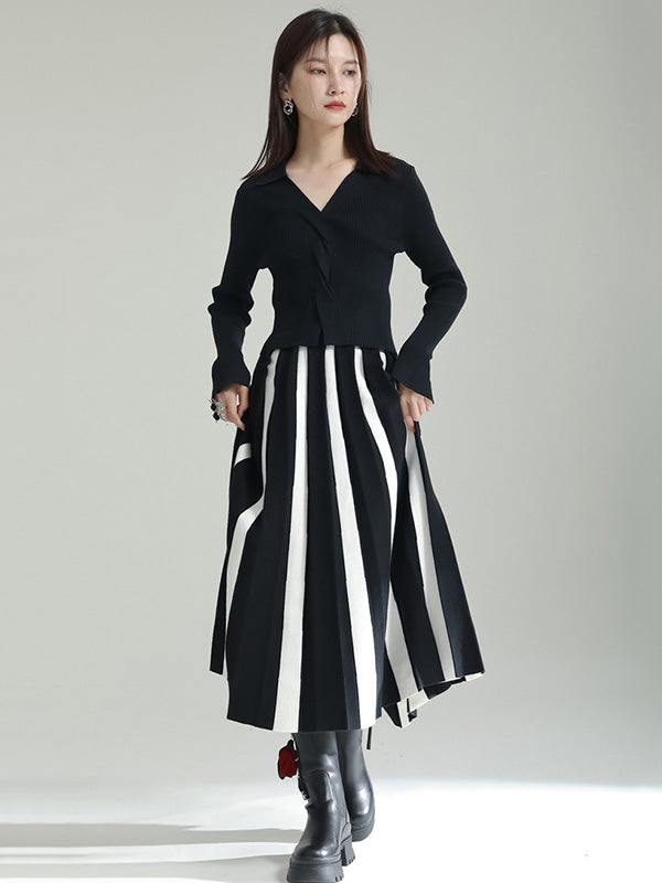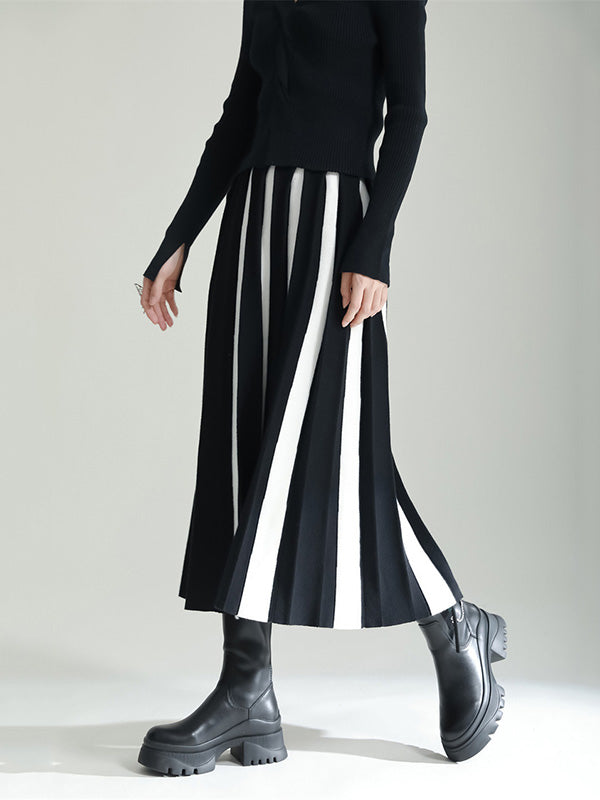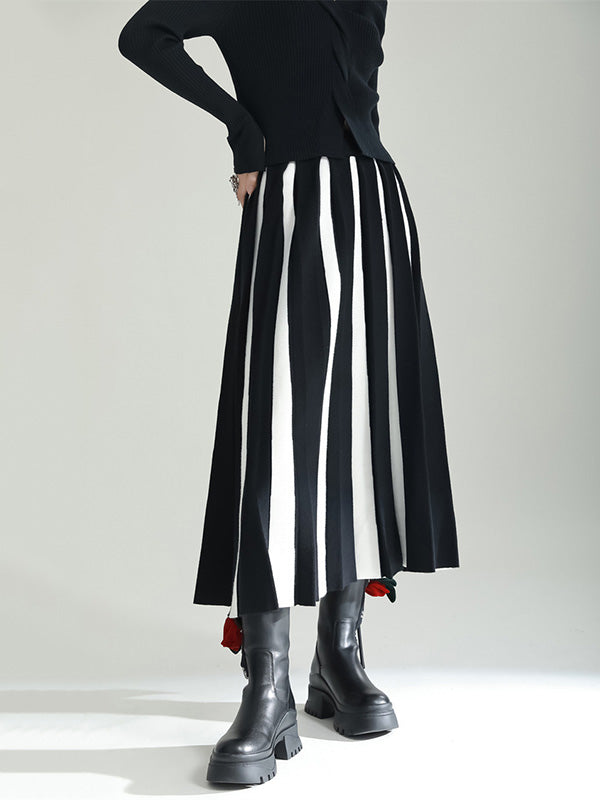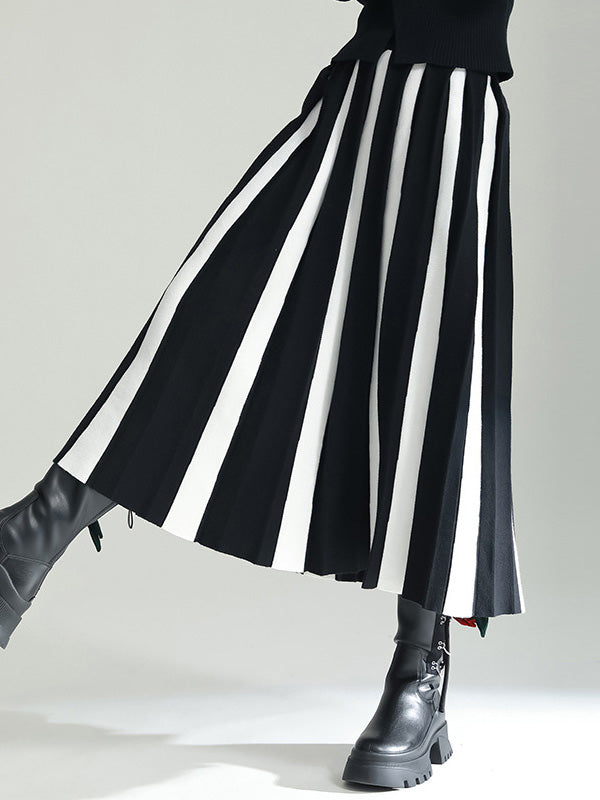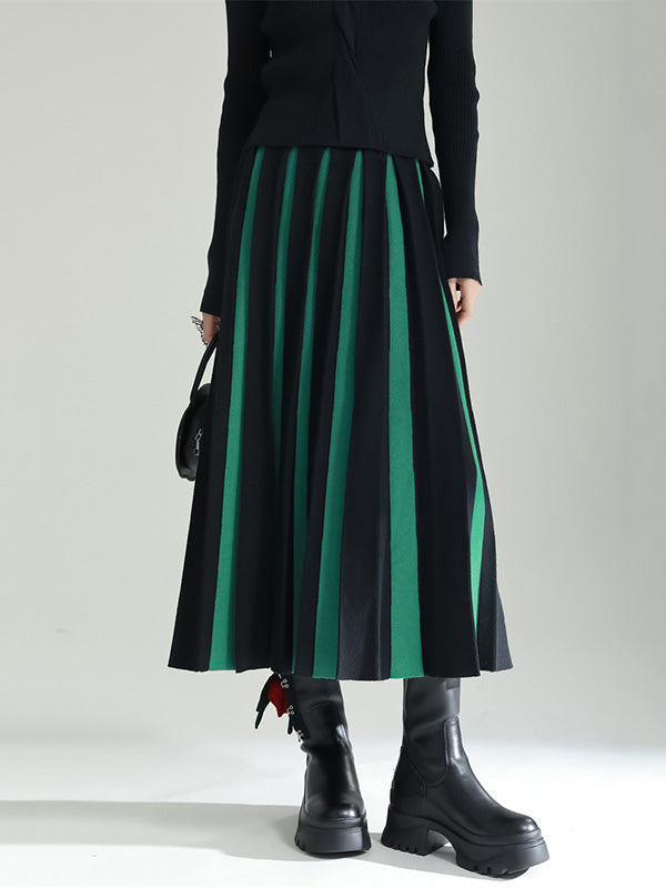 Momentlover Original Creation Loose A-Line Contrast Color Striped Skirts Bottoms