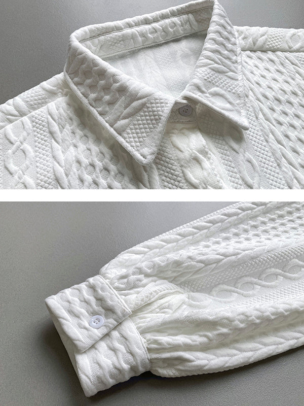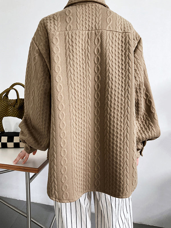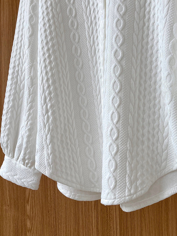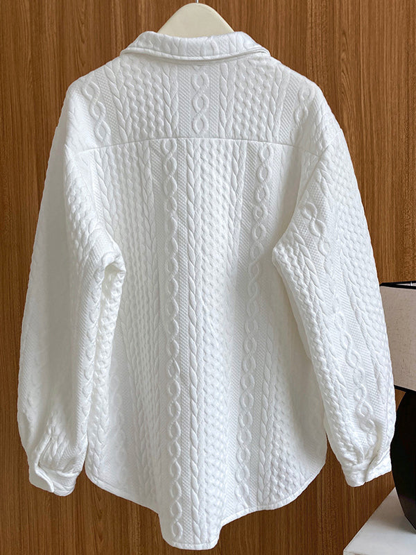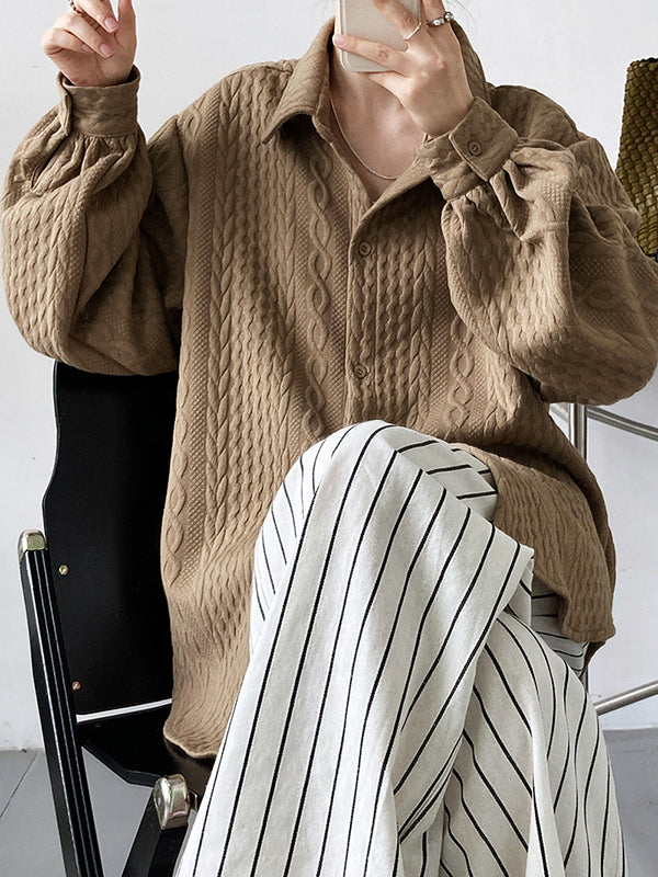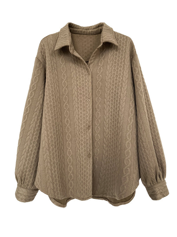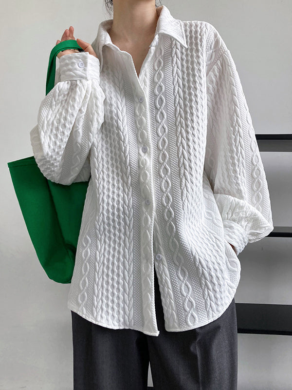 Momentlover Simple Loose Long Sleeves Buttoned Solid Color Textured Lapel Collar Blouses&Shirts Tops