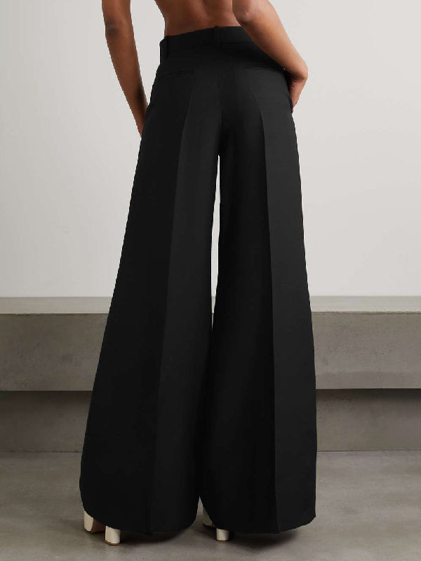 momentlover Wide Leg Solid Color Flared Trousers Pants