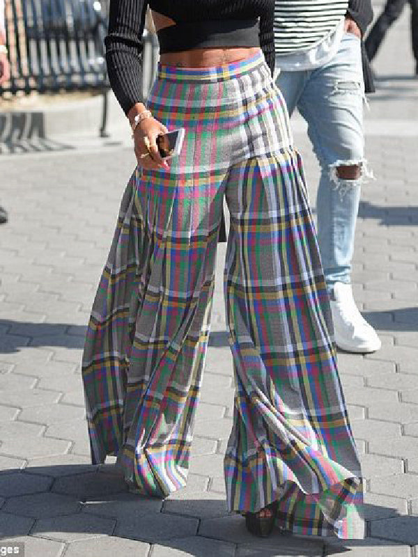 momentlover Stylish Selection Wide Leg Loose Pleated Checkered Casual Pants Bottoms