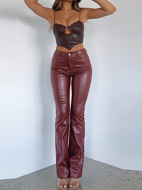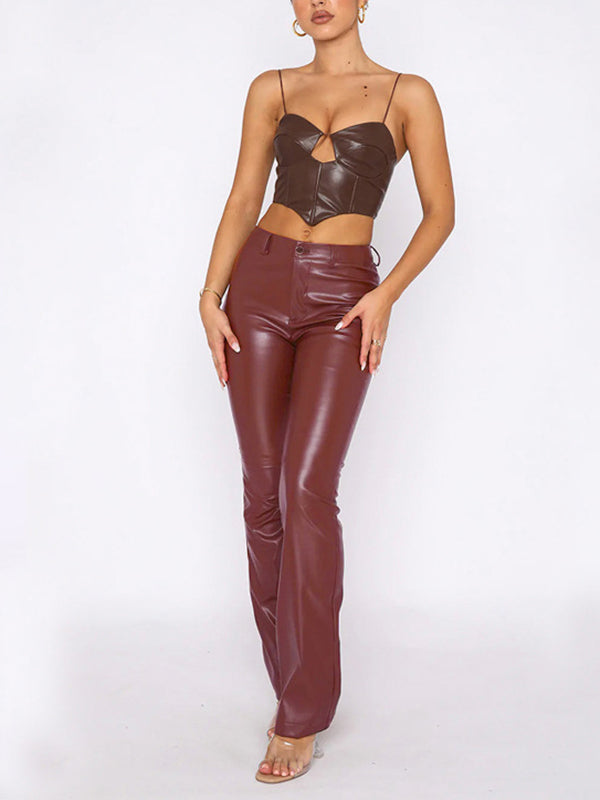 Momentlover Zipper Solid Color Buttoned High Waisted Trousers Pants